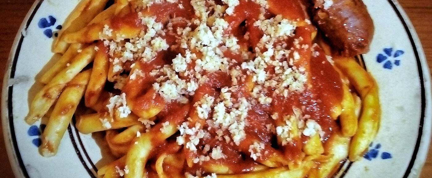 I fusilli con pezzente e rafano, o meglio fusidd’ c’u pèzzènt e ràfan‘, sono una ricetta tipica della Basilicata. Per tradizione questo piatto veniva preparato durante il periodo di Carnevale, cioè il giorno della Candelora (martedì e giovedì grasso). Il sugo di pomodoro viene insaporito con una grattata di rafano ed il pezzente lucano, un salume fatto con tagli di maiale meno pregiati rispetto al salame tradizionale, da qui il nome, che sta ad indicare “salame per i poveri”.